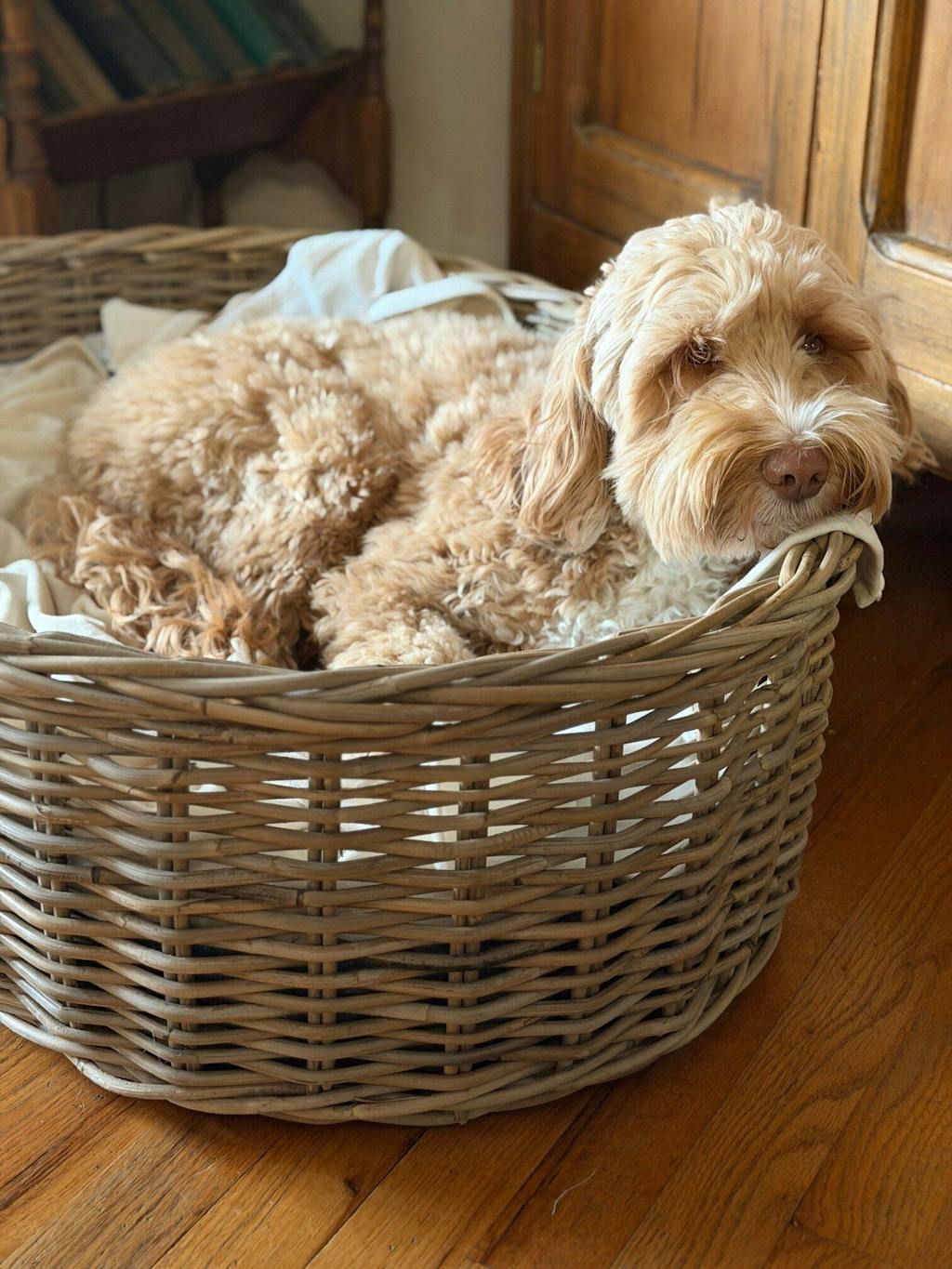 I have been searching for a wicker dog bed for a long time! The size of this is perfect for our pup and it looks beautiful!! The pillow is pretty and the price is so good for what you get! 10/10 recommend! I am sharing it with everyone!!